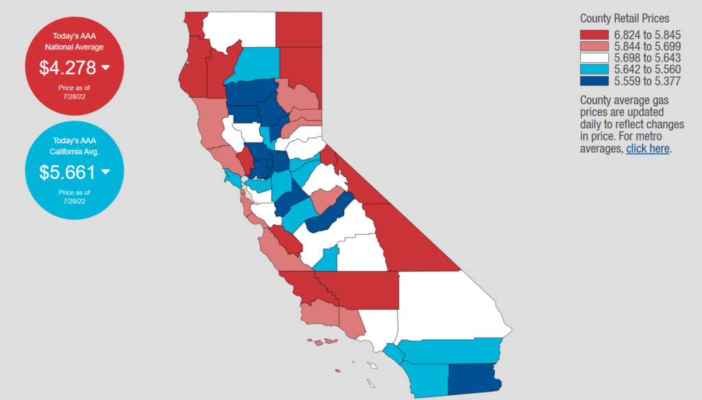 Но и в самой Калифорнии есть разница по ценам, есть области, где топливо недорогое:
