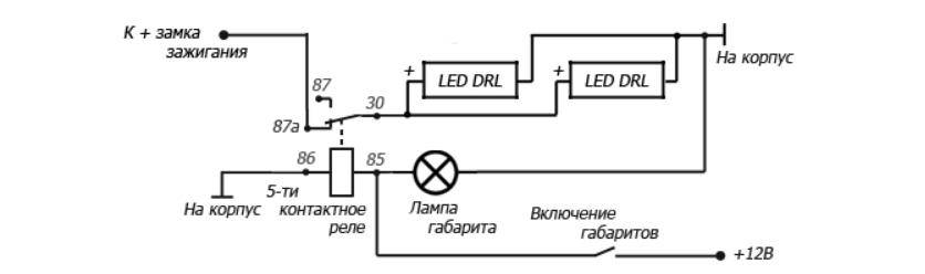 - От минуса протягивается провод на контакт 87 реле.