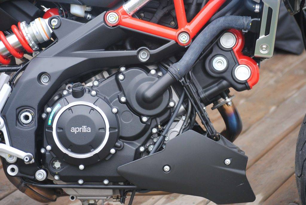 В Aprilia shiver 900 производители поставили такой же V-образный двигатель, как на Dorsoduro 900, но с некоторыми доработками. Разница в том, что первый ход поршней в Шивере на 11 мм длиннее, что дает изменение ттх (например, увеличение рабочего объема). К тому же мотор получил новые поршни, облегченные пальцы и антифрикционное покрытие стенок цилиндров. Помимо прочего, изменился коленвал, который стал более сбалансированным.