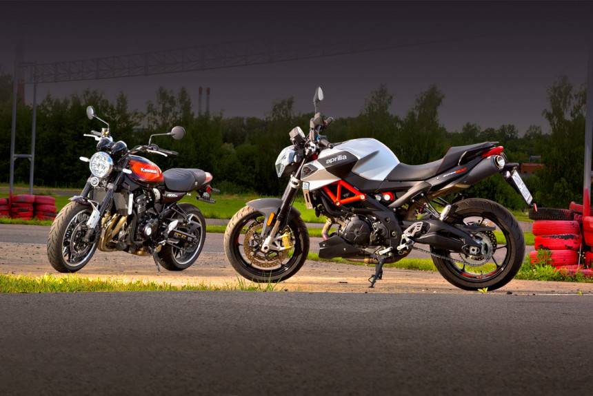 Они современные, однако из разных эпох. Kawasaki Z900RS — это актуальное прочтение легендарной классики. А Aprilia Shiver 900, наоборот, техногенна по самые тарелки подседельного выхлопа. К тому же она дешевле! Но.