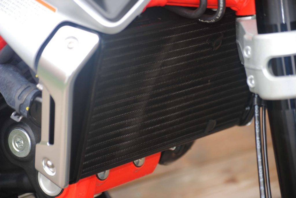 Двигатель мотоцикла встроен в компактную решетчатую раму. Она сделана так, чтобы облегчить общую конструкцию, но при этом обеспечить ей устойчивость и прочность. Основной материал – сталь. Большая часть рамы окрашена в красный цвет, что выделяет ее на фоне алюминиевых серебристо-черных пластин.