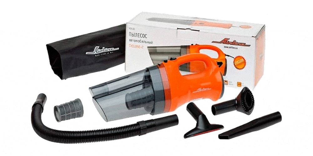 На третьем месте Airline CYCLONE-2. Один из самых мощных автомобильных пылесосов на рынке. Мощность всасывания достигает 5 000 Па — это на треть меньше, чем у среднего бытового пылесоса. При этом работает от сети 12 Вт. Оснащён системой Циклон: пыль и грязь надёжно отделяются от выходящего воздуха и остаются в съёмном контейнере объёмом 0,5 л — показатель средний для подобных устройств, хватит на 3–4 полноценных уборки авто.