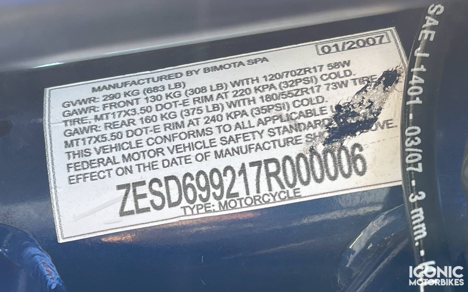Manufactured in January 2007, this example is VIN: ZESD699217R000006.