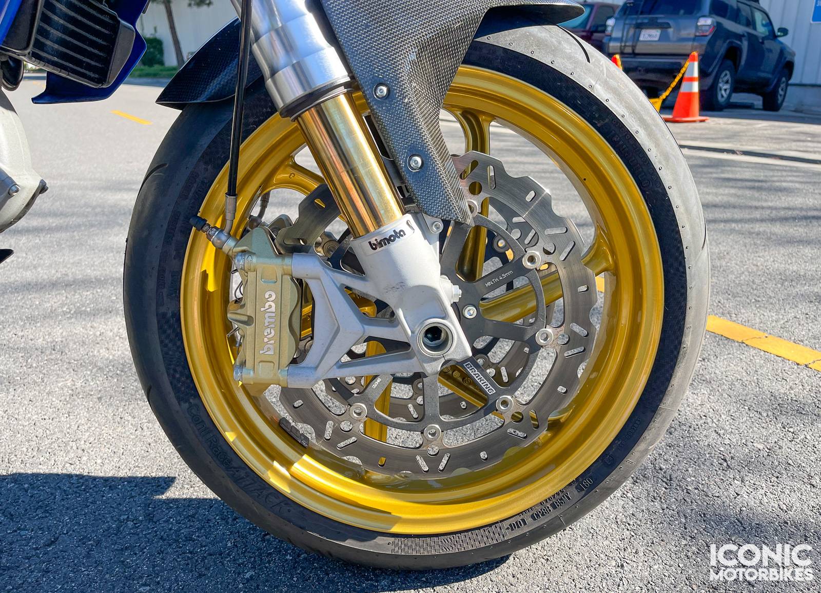 Торможение обеспечивается Brembo двумя передними дисками 320 мм и радиальными крепежными скобами, а также задним диском 220 мм , все с АБС.