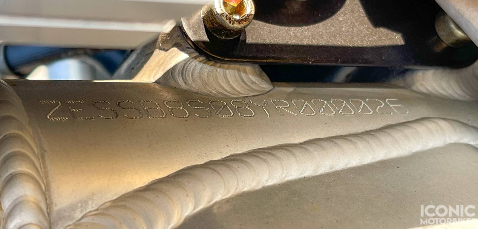 This example is VIN: ZESS8996X6R000010, Engine #: T504-113287. The seller sold it to a friend in 2008 who put 1 mile on it and kept it on display. He then re-acquired it from that friend recently and rode it for a mile two days ago.