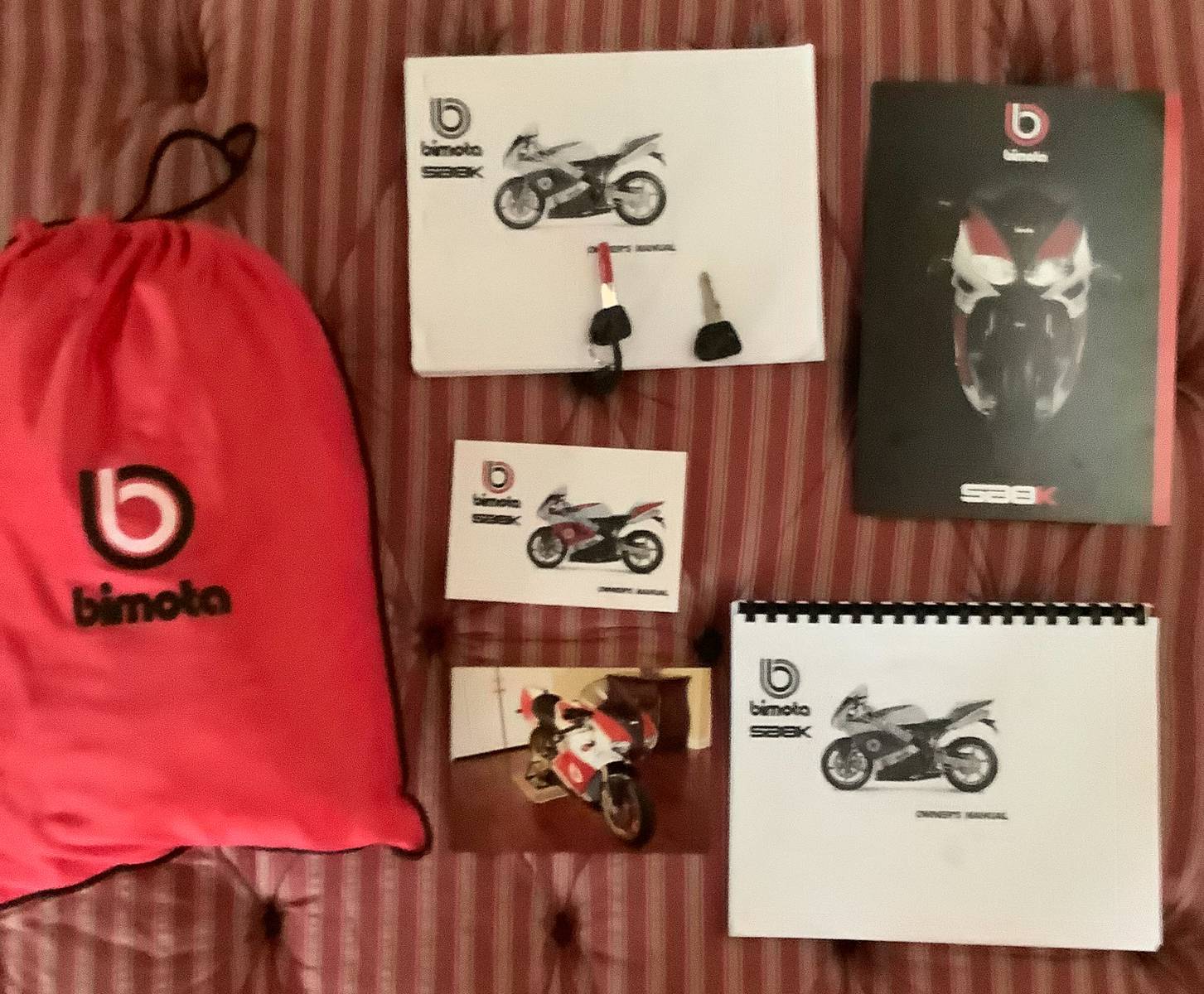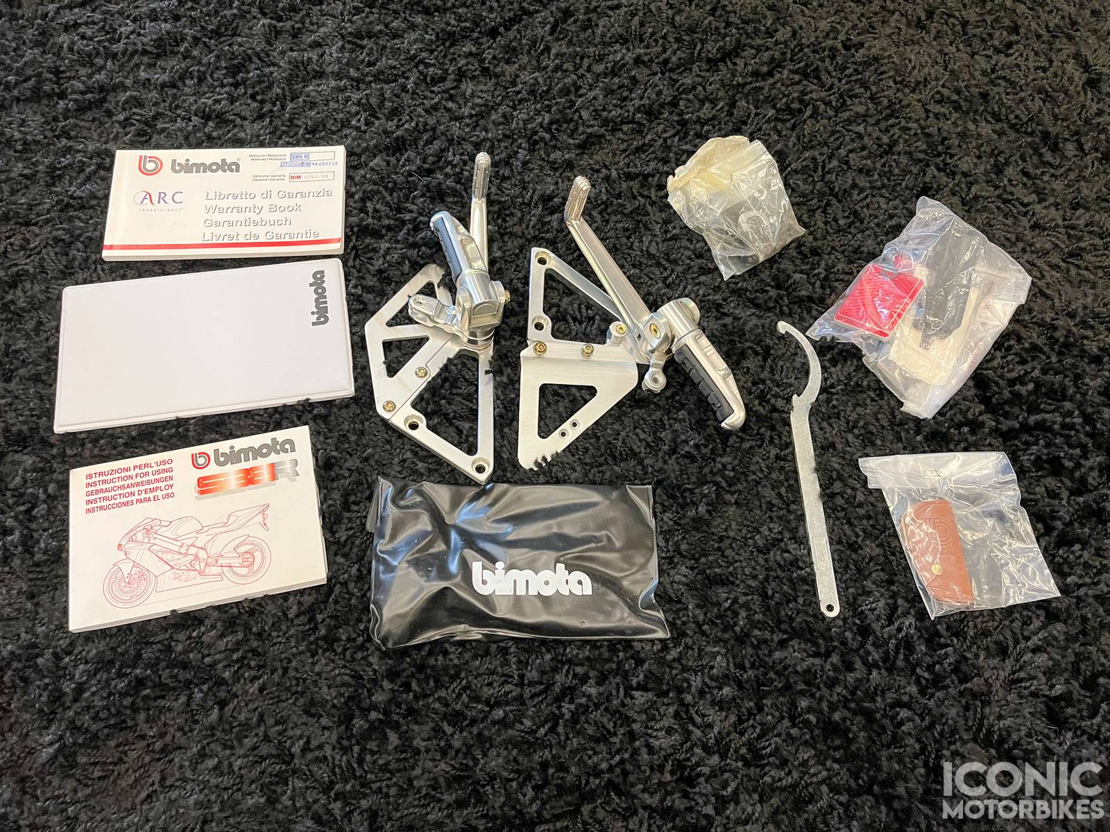 The sale includes the warranty book, owner’s manual, standard rearsets, shock wrench, leather key chain, reflectors, and tool kit.