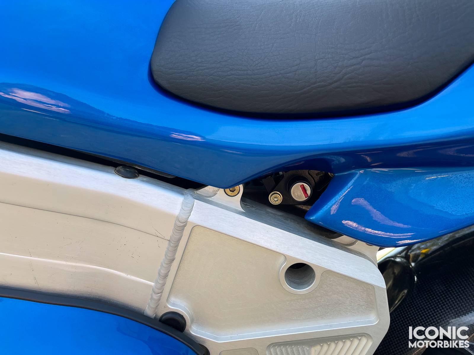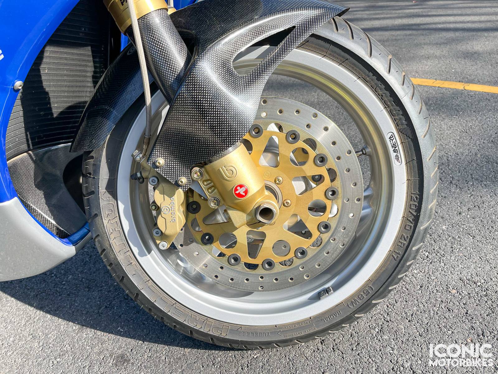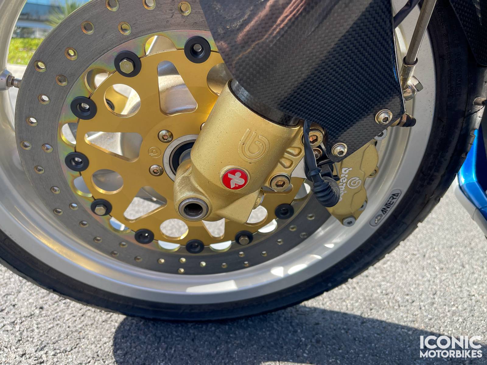 In this case, the YB11 specifically utilized the 1,002cc inline 4 motor from a YZF1000R (known in some markets as the Thunderace), but the Bimota weighed an impressive 32 pounds less than the Yamaha. That might be why the Italian firm called this the “Superleggera.” Just 600 YB11s were built, 87 of which were originally sold in the United States. In addition, Bimota produced 50 examples of a 25th Anniversary model.