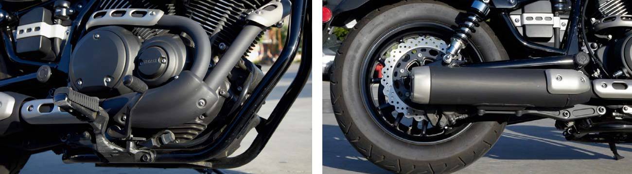 Итогом всех манипуляций стало незначительное увеличение производительности двигателя — преимущественно в зоне низких и средних оборотов, в которых и «живут» истинные любители бобберов. Как и полагается мотору подобного класса, силовая установка новинки Yamaha обладает отличными тяговыми характеристиками, которые выражаются в абсолютной индифферентности двигателя, с какой передачи и какой скорости разгонять мотоцикл.