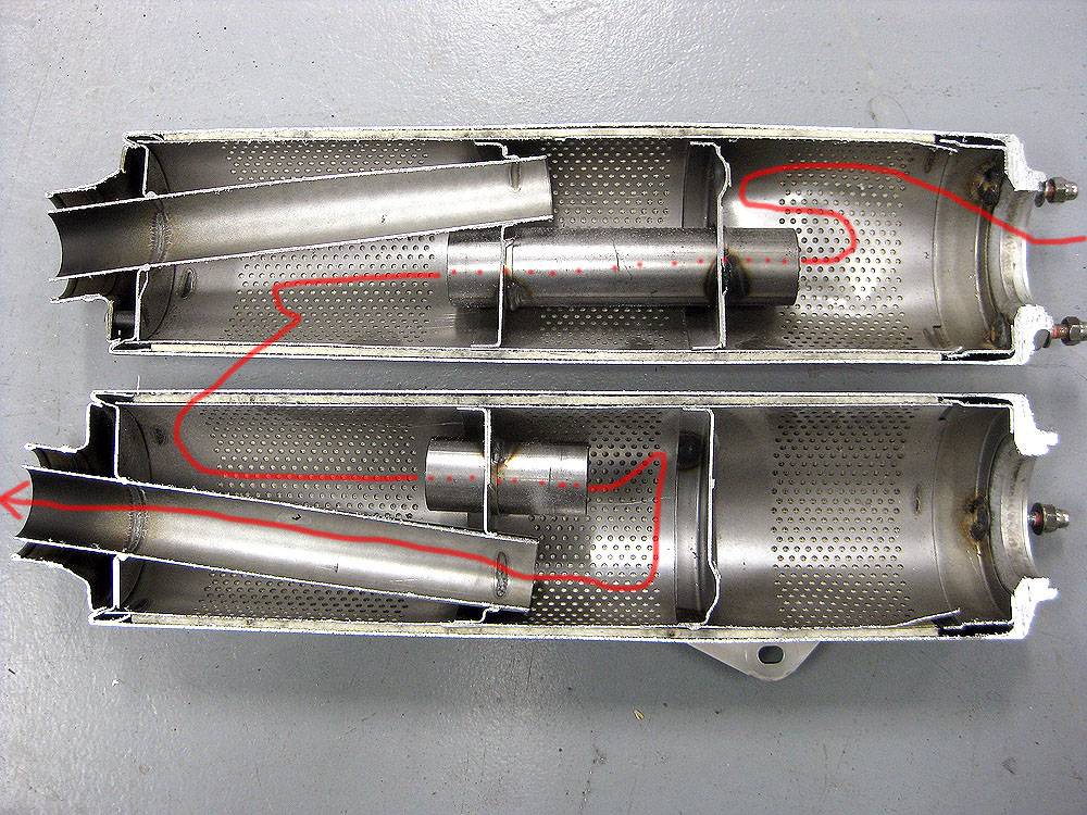 Подавлением шума занимается часть глушителя, находящаяся за первой перегородкой, и состоит она из акустического фильтра. Эти фильтры на спортивных мотоциклах выполнены проще, так как в спортивной мототехнике допускается уровень шума более высокий.