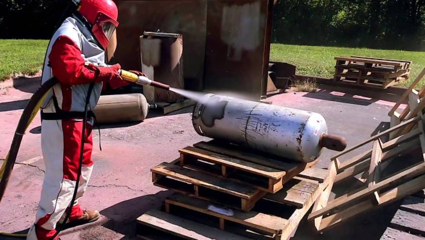 Пескоструйный аппарат. Данный способ аналогичен водоструйному, но абразивом выступает песок, а не стекло. Более эффективен, так как удаляет красящий состав, ржавчину. Отметим, что стоимость оборудования высока.