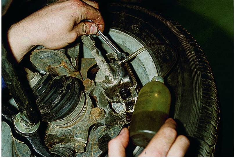 Процесс прокачки тормозов с целью удаления воздуха занимает больше времени. Процедура с нажатием педали и выпуском смеси с пузырьками может повторяться неоднократно. При этом расход новой ТЖ, как правило, больше чем в первом случае.