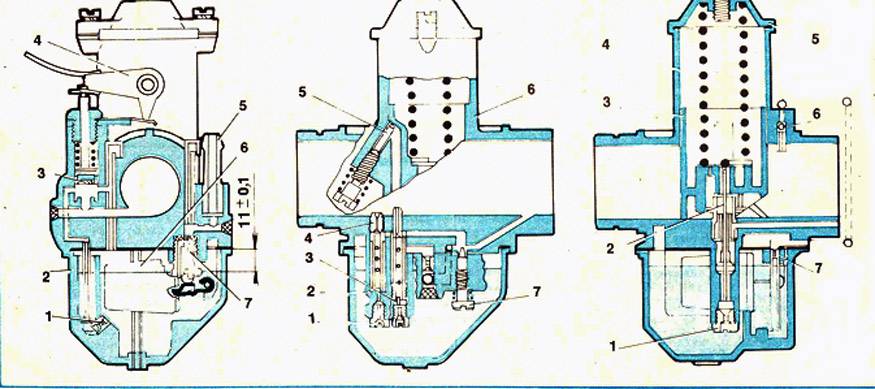 Как видно на рисунке, топливо выводится с низу вверх благодаря разрежению, которое создается в канале карбюратора, и никаких дополнительных устройств, для подачи топлива абсолютно не надо. Этот простой механизм очень надежный и поддается множеству регулировок.