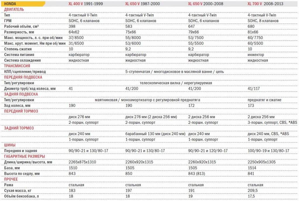 | Масса мотоцикла (снаряженная) | 214 кг – XL700V 219 кг – XL700VA (с C-ABS) |