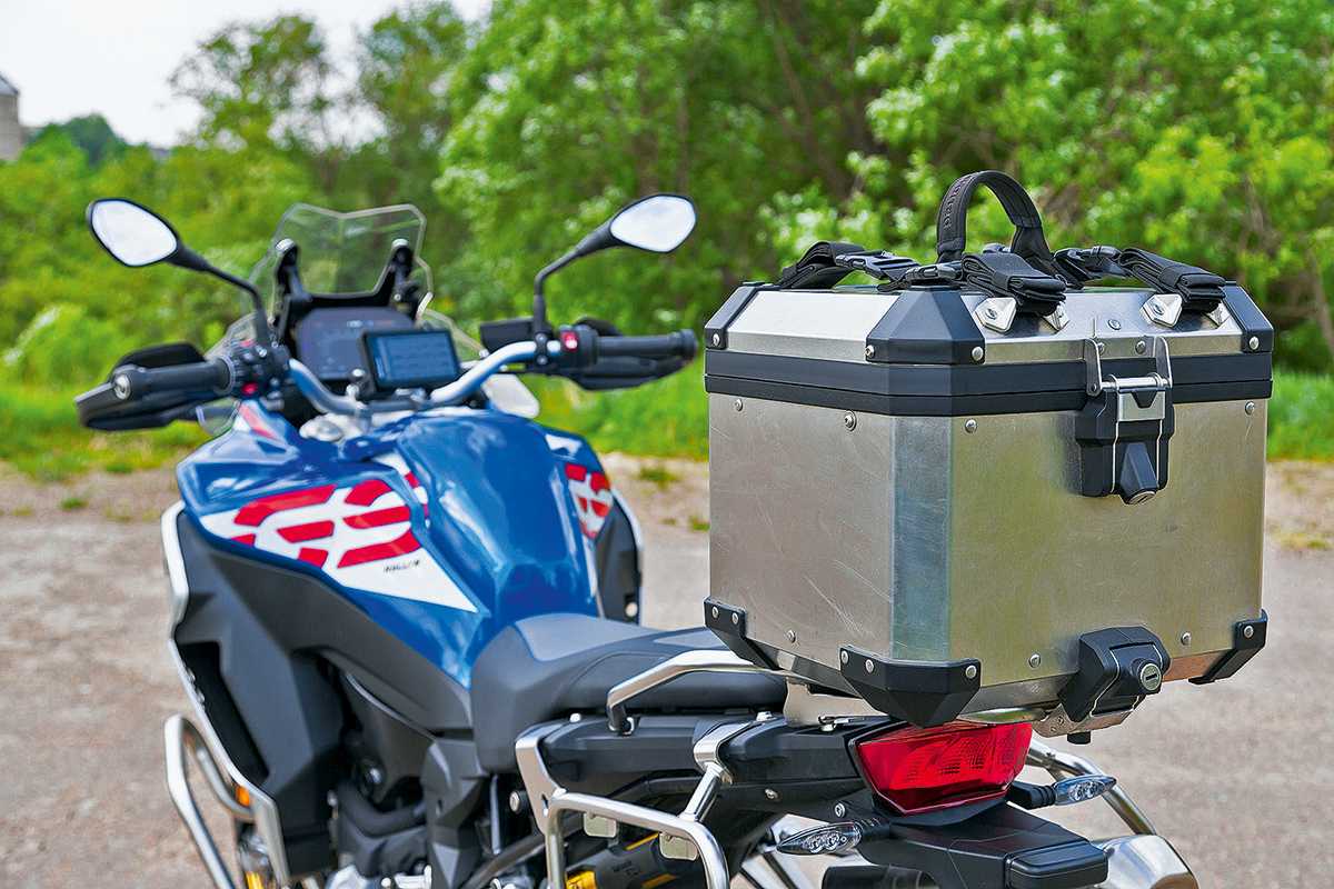 В F 850 GSA сильная практическая составляющая: прежде всего, этот средний «гусь» — настоящий путешественник. В трех кофрах можно увезти много полезного груза. Хорошо развитая ветрозащита обеспечивает комфорт, направляя потоки воздуха только в лоб и по низу ног. Этого удалось добиться благодаря регулируемому вручную ветровику и небольшим обтекателям по бокам от него, которые пускают воздух мимо рук и торса пилота. А ноги скрыты за широким «фюзеляжем» мотоцикла.