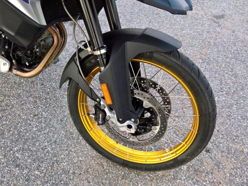 The F850GS Rallye variant features gold rim aluminum cross spoke wheels. The front is 21 x 2.15 shod with a 90/90 tire while the rear is 17 x 4.25 and carries a 150.70 R17 tire. And, to the joy of many, tires can now be run tubeless.