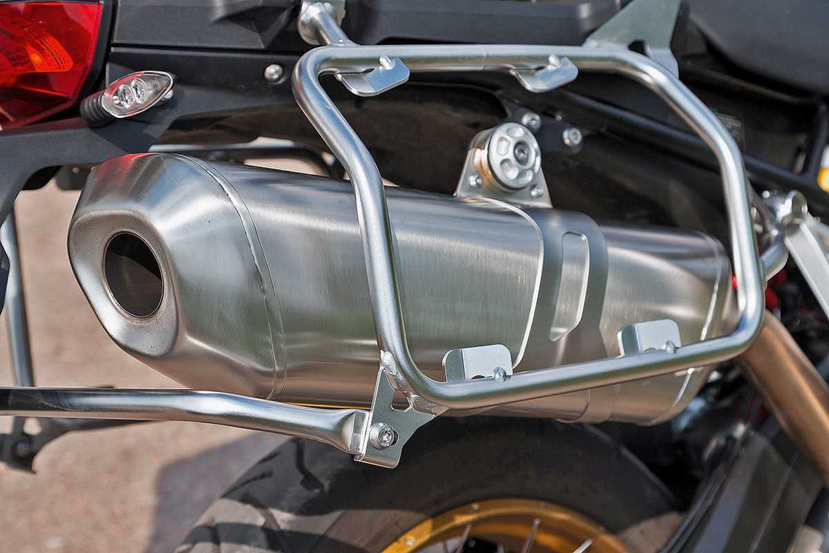 It is hard to miss the specific GS Rallye highlights including the radiator trim and cross-spoked gold rims, and especially for F-series owners, the (now) right-side exhaust and left-side chain drive.