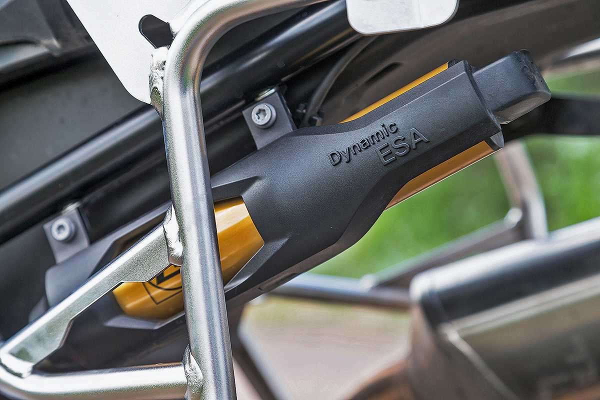 Задний амортизатор здесь имеет классическую конструкцию (на 850ке стоит амортизатор системы WAD с прогрессивным демпфированием). В базовом виде преднатяг амортизатора настраивается вручную с помощью гидравлической системы, как и сглаживание отбоя. Перейдя на Premium Package, вы получаете электронное динамическое управление подвеской Dynamic ESA, которое позволяет настраивать подвеску с помощью кнопок. Ход задней подвески составляет 175 мм, что примерно на 4 сантиметра меньше, чем на F850GS.