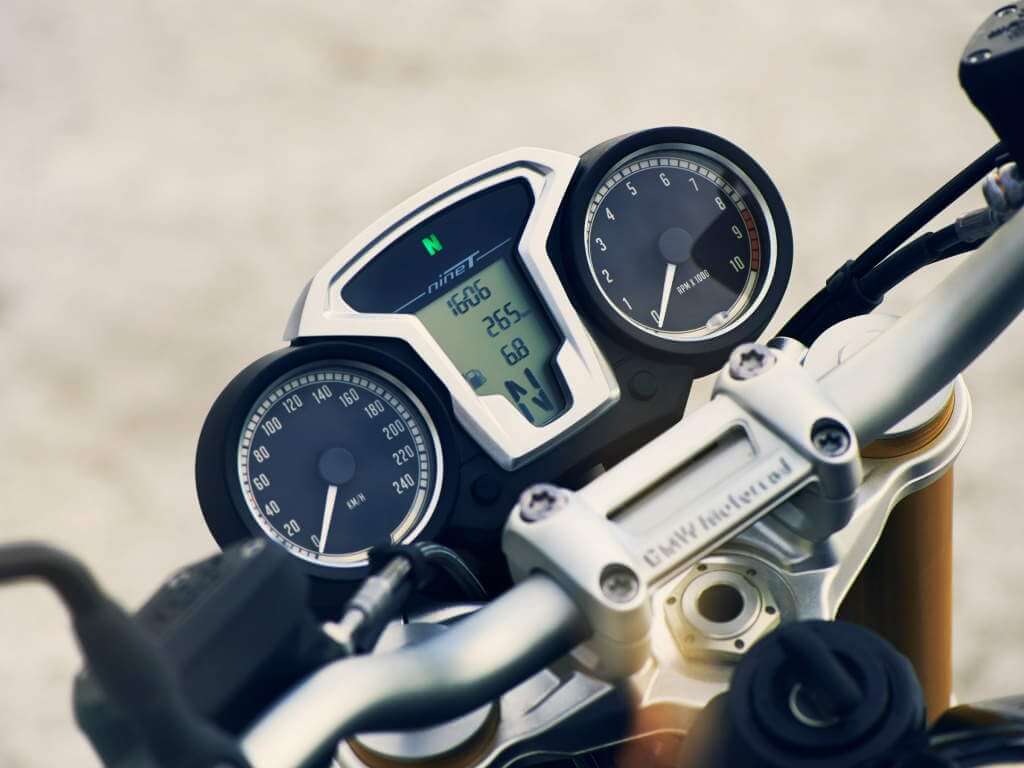 Все модификации независимо от комплектации оснащаются системой ABS. Тормоза также позаимствованы у R-серии — два 320-мм диска спереди с 4-поршневыми радиальными суппортами и 265-мм диск с 2-поршневым суппортом сзади. Останавливается мотоцикл и правда очень резко, так что решение оснастить его ABS однозначно было верным, что бы там ни говорили противники наличия этой системы на мотоциклах. Максимальная скорость BMW R Nine T — 225 км/ч, но седока начнёт ощутимо сдувать с сиденья задолго до её достижения. В бензобак вмещается 18 литров, а расход топлива составляет порядка 5,5 литров при скорости 110 км/ч.