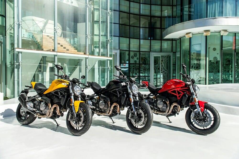 Компания Ducati выпустит новый Monster в трех цветовых исполнениях. Радикальный Monster 821 Dark будет выделяться чёрными рамой, колёсными дисками, топливным баком и элементами облицовки. Также будут доступны красная версия с чёрными колёсными дисками и белый мотоцикл с красной рамой и матово-красными колесами