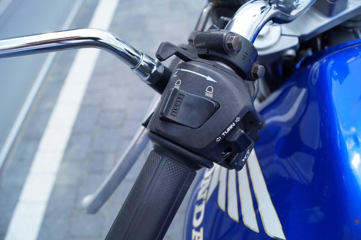 - Ветровое стекло или какие-то другие детали защиты отсутствуют. Указатели поворота вынесены на перья вилки, расположены чуть выше центра фары Руль находится выше — стандартный изогнутый вариант дорожника.
