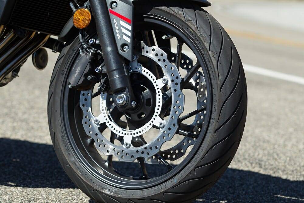 Nissin provides the brakes and they are neither great nor bad. It’s a traditional master-cylinder set-up so it’s not like you’re going to get SBK levels of braking power, but it’s adequate for the job, especially when you throw in the ABS as standard.