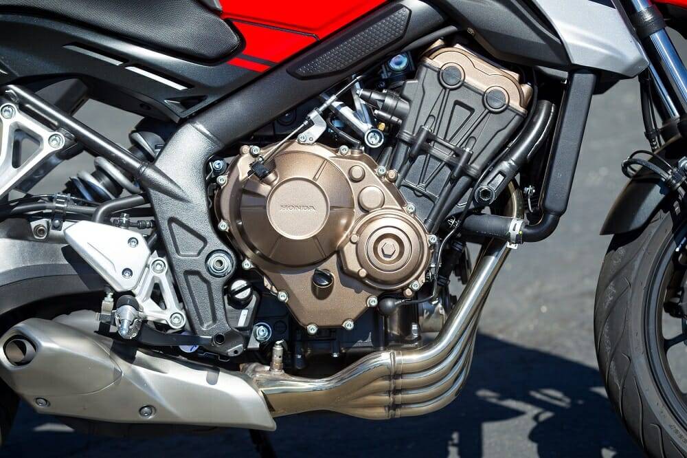 Силовая установка нового Honda CB650R прибавила в мощности 5%, которая составляет 94 лошадки на 10 000 об/мин, крутящий момент достигает максимума 63.7 Нм при 8 500 об/мин, а раскрутить двигатель теперь можно до 12 000 об/мин (раньше только до 11 000 об/мин). Максимальная скорость мотоцикла 217 км/ч.