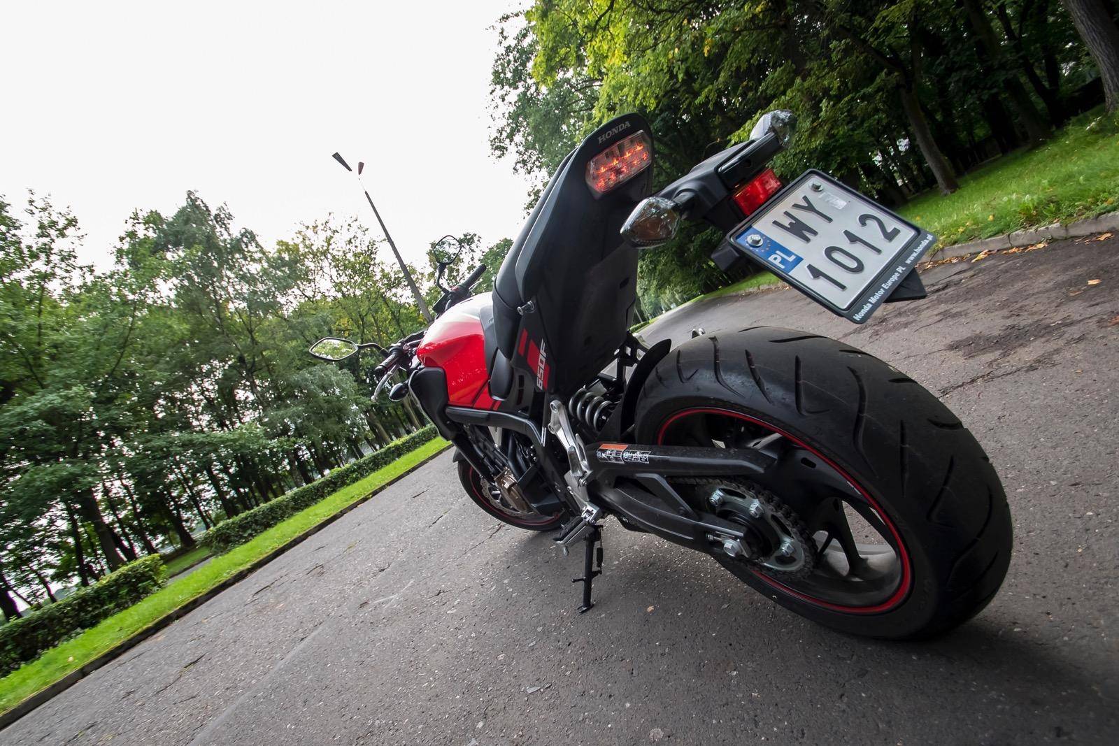 Honda CB650F выдает мощность очень плавно. Динамическое ускорение возможно практически во всем диапазоне оборотов. Даже когда мы едем на шестой передаче, а тахометр показывает “ленивые” 1500, достаточно переместить правое запястье, чтобы мгновенно разбудить скрытый потенциал, скрытый в Honda. Однако ее энтузиазм в отношении ускорения при любых обстоятельствах вызывает небольшие проблемы при маневрировании или движении в пробке. Тогда даже минимальное движение с захватом приводит к вытягиванию вперед. Даже когда вы находитесь в пробке почти без ощущений, мотоцикл постоянно «тянет» вперед. Иногда даже нужно ездить на полуоборотах. Однако когда вы выпускаете CB650F в открытое пространство, вы можете видеть, что машина любит “дышать”. И у него есть что-то. Дополнительные несколько лошадиных сил были получены путем модернизации системы воздушного потока через впуск, выхлоп через выхлопную систему. При этом сначала всасывающие каналы укорачиваются, что подает воздух на четыре дросселя диаметром 32 мм. Кроме того, глушитель теперь имеет две (а не три) внутренние камеры, что позволило снизить противодавление. Торцевое отверстие также увеличено, что облегчает выпуск воздуха.