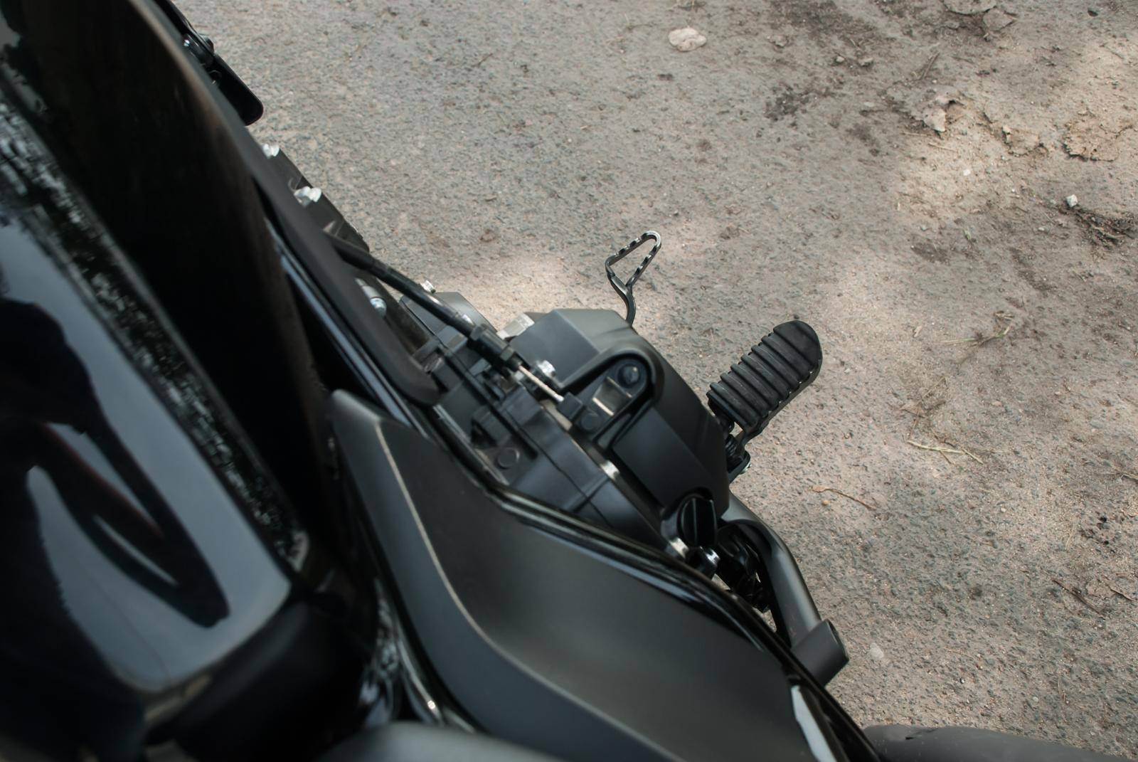 Первые дни езды на Honda Rebel были связаны с постоянным поиском подножек под бедрами (как в спортивных или уличных мотоциклах), а не спереди. К сожалению, даже после их нахождения трудно говорить о симметрии, поскольку правая подставка для ног (и, следовательно, правая ступня) слегка смещена от оси мотоцикла из-за выступающего фрагмента корпуса двигателя.