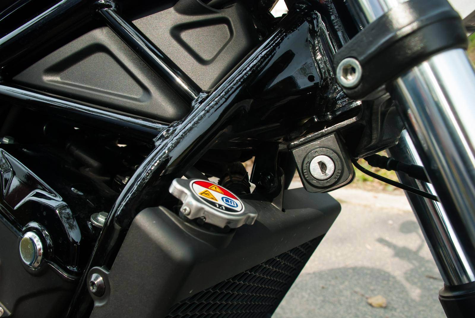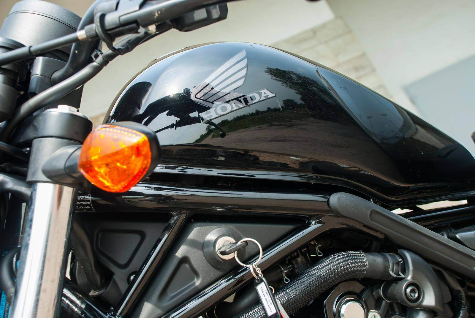 Серьёзный двигатель установлен в шасси Honda Rebel, визуально и эргономически напоминающее младшие модели, вплоть до низкого 70-сантиметрового сиденья. Более пристальный взгляд откроет усиленные трубы рамы, чёрную перевёрнутую 43-ю вилку, амортизаторы с внешним резервуаром, увеличенную ЖК-приборную панель. Другие особенности, типа 13,6-литрового бака, диодного света, прочных стальных крыльев на колёсах, более-менее представляют собой увеличенные вариации на тему младших сородичей. Но главное отличие замаскировать под благообразный облик 300-500-кубового новичкового круизёра невозможно, ведь речь идёт о большом, серьёзном и современном двигателе и функционале, непревзойдённом в сегменте среднекубатурных круизёров.