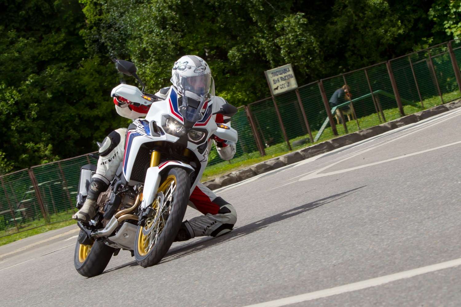 На асфальте, даже с учетом внедорожной размерности колес и ходов подвесок, мотоцикл не плох – жесткости шасси достаточно, никаких намеков на раскачку. А если вдруг они появятся, подвески не долго и настроить под себя, правда инструментами, а не «проводами»: передний перевертыш и задний моноамортизатор, работающий через мощные рычаги прогрессии имеют полный набор регулировок. По меркам туристических эндуро Africa Twin ощущается легкой и послушной, и ехать на ней, с поправкой на слишком уж рано срабатывающую ABS, можно весьма динамично.