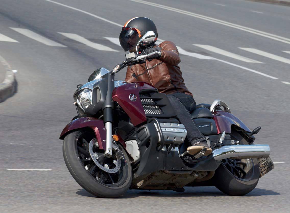 Пока привыкал к тестовому мотоциклу по пути от представительства компании Honda до гаража, несколько раз по неосторожности срывал заднее колесо F6C в пробуксовку… просто излишне оптимистично открыв «газ» со светофора! Это, кстати, коварная черта новой модели: при условии что F6C лишен практически всех электронных систем помощи (в том числе нет, конечно, и трекшн-контроля), а у 1832-кубового двигателя бездонный крутящий момент, «начинающийся» с самых «низов», на мокром асфальте (да и на сухом порой тоже…) Valkyrie превращается в такой довольно увесистый dirt-tracker, который с места трогается исключительно со 100-метровым дрифтом…