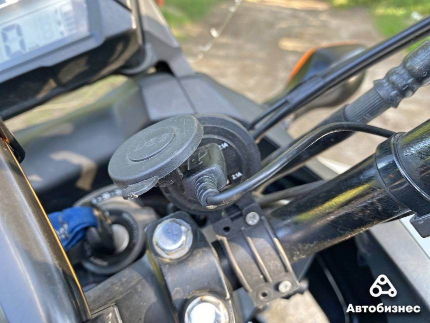 Руль высокий, удобный. Есть ветрозащита рук и подогревы ручек. Дополнительно установлено крепление для видеорегистратора и навигатора.
