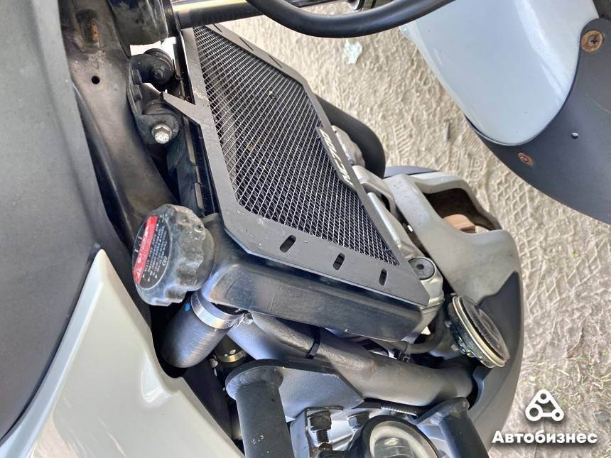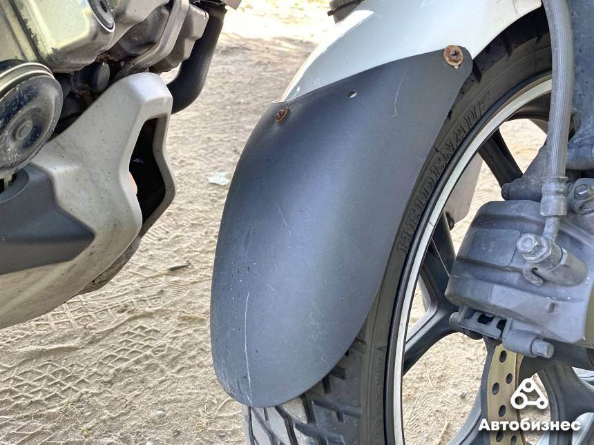 Вилка у мотоцикла – перевернутого типа. Владелец достаточно грамотно улучшил байк. Например, установил пластиковые щитки для того, чтобы вода не попадала в вилку.