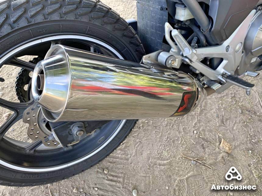 Глушитель тихий, мотора почти не слышно. Есть мнение, что громкие глушители безопаснее, так как мотоцикл слышат, но по факту это не работает, а только раздражает в дальних поездках.