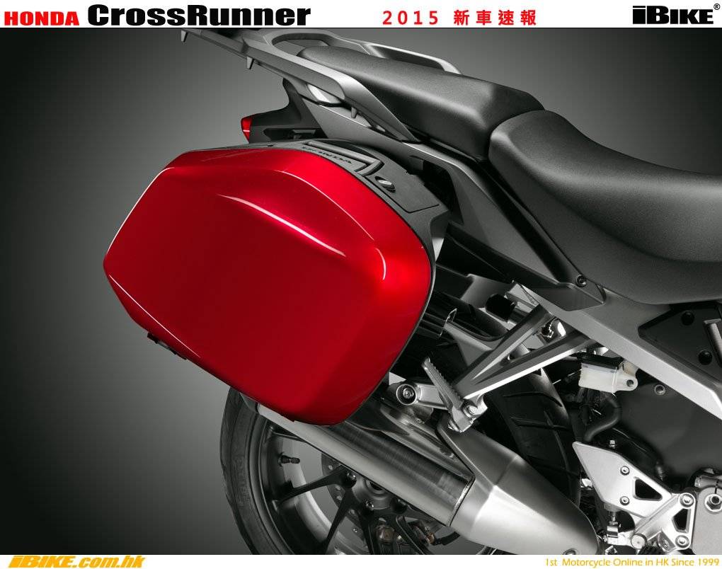 Хонда VFR 800X Кроссраннер выглядит стильно. Бак резко поднимается от сиденья. Ветровое стекло само по себе невелико, однако оно располагается высоко и потому хорошо защищает владельца. Центральный контейнер сзади крупный и может выступать в качестве спинки для пассажира. Литые колесные диски не бросаются в глаза, но выглядят утонченными.