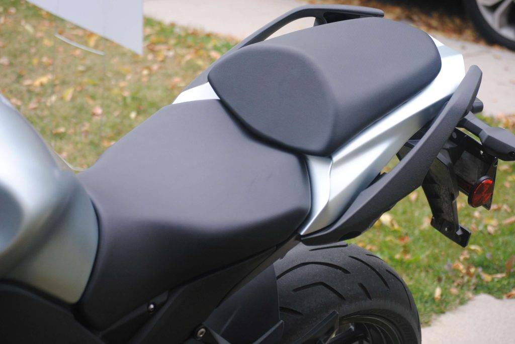 The seat on this bike is comfortable. It is not as comfortable as some more expensive motorcycles out there, but I would be able to do a long distance ride on this bike without too much complaining. It was firm, but not hard. The cushioning was adequate for longer trips and excellent for a commuter.