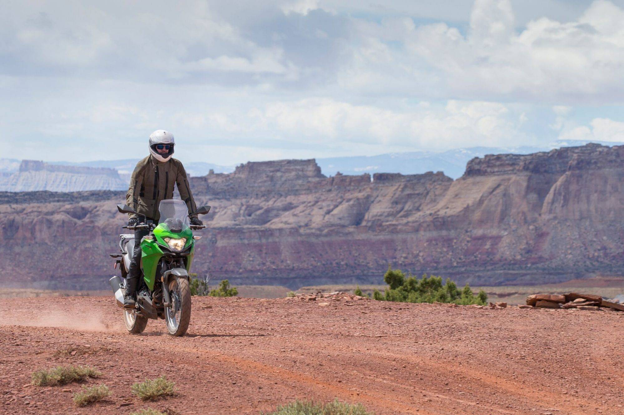Only a few days after our trip through Utah concluded, a number of people have asked me about the engine performance. The most common query relates to the comfortable cruising speed and whether or not the 296cc motor has to be flogged like a donkey to keep pace. Before our group had even warmed our seats, we had our X 300s hurling down the interstate at 80 mph, no discernible indications the engine was under any strain. Rolling into the mid-80s, the tach needle climbed toward the 10,000 rpm digit, curiously close to redline, yet still felt composed and unstressed. The bulk of our miles over the course of two days were spent comfortably blasting along at 65 to 75 mph, a range of speeds which appear to be the X 300’s sweet spot. At that tempo, my digital gauge listed my fuel burn at an estimated 54 mpg. With the 4.5-gallon tank, that gave us sufficient range to not fret about refueling.