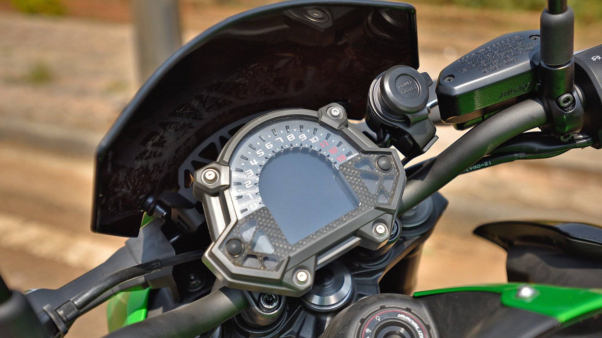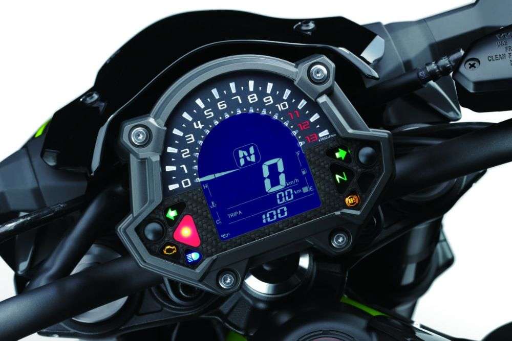 О том, что «Кавасаки Зет-800» – это стоящий мотоцикл, дополнительно свидетельствует информативная приборная панель с широким функционалом. Кроме основных параметров, водитель получает сведения о расходе горючего, возможном расстоянии, которое можно пройти на его остатке. Центр панели приборов напоминает устройство из фантастических фильмов, оснащается жидкокристаллическим тахометром. При увеличении оборотов полоски становятся больше в размерах, что обеспечивает их отличную видимость. Любителям стандартного стрелочного циферблата придется некоторое время привыкать к новшеству.