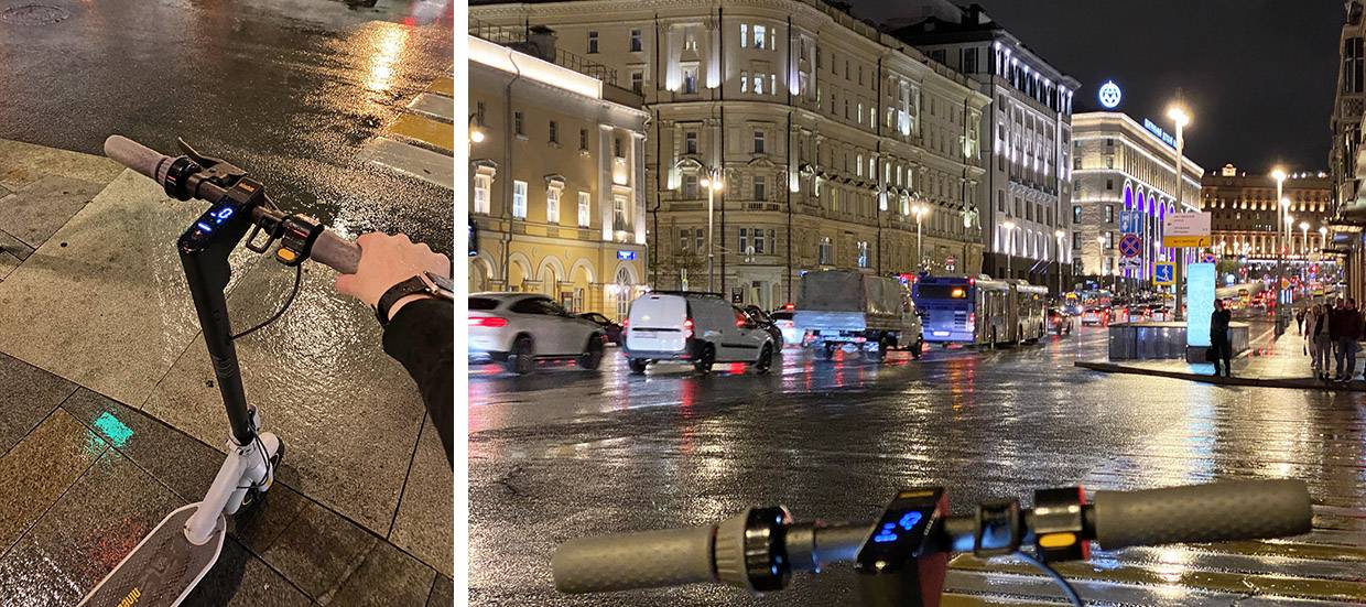 В начале сентября шли недели почти ежедневных дождей, и владельцы обычных электросамокатов пересаживались обратно в авто или выдвигались пешком. Тем временем в первый же дождливый вечер я впервые достал MAX G30LP, оттолкнулся и погнал в Москву прямо в ливень. Было интересно, утоплю ли.