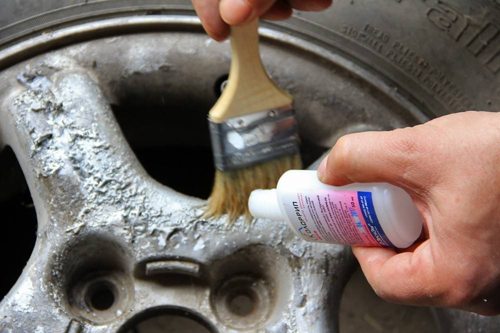 - Обезжирить поверхность литого диска и высушить салфеткой;