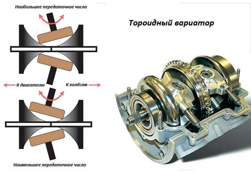 У каждого производителя свой механизм изменения положения роликов. В некоторых моделях ролики вращаются относительно оси конусов. В других вариаторах ролики перемещаются по оси вала, а их вращение относительно конусов происходит за счет прижатия к ним. Ролики самостоятельно меняют свое положение в плоскости за счет центробежной силы.
