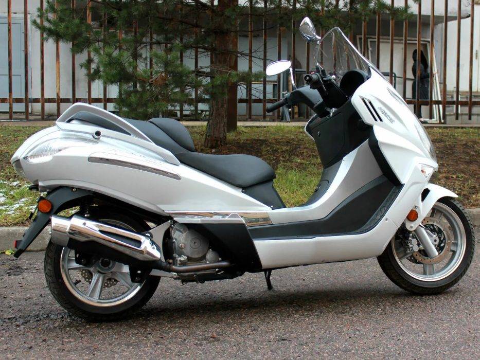 интересное отличие данной модели от соперников – наличие третьего колеса. надежная и энергоемкая модель, которая очень устойчива и уверенно чувствует себя на дорогах. Кроме того, у нее отличная управляемость, именно поэтому она хорошо подойдет новичку. Максимальная скорость этого макси скутера составляет 120 км/ч. Благодаря хорошей динамике на нем можно совершать поездки и в ближайшие поселки. Главное преимущество модели – возможность стоять на светофоре, не опуская ноги.