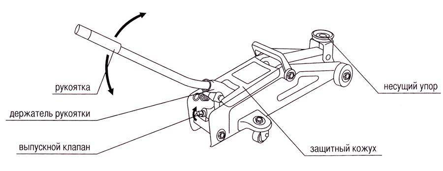 При использовании подкатного домкрата для подъема автомобиля следует помнить о технике безопасности и соблюдать меры предосторожности. Пользоваться подкатным домкратом можно на ровной и твердой поверхности. Пользоваться подкатным домкратом можно на ровной и твердой поверхности