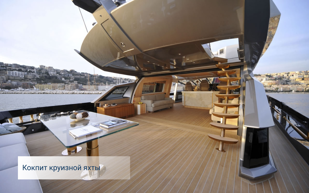- кокпит яхты. У такого судна бывает два типа кокпитов — открытые и закрытые, а располагаться могут с краю или по центру. Открытые кокпиты выглядят как огороженный участок палубы, а закрытый представляет собой отдельную каюту для капитана и пассажиров. Для людей более комфортным считается центральный кокпит, так как там не укачивает, и волны до него не достают;