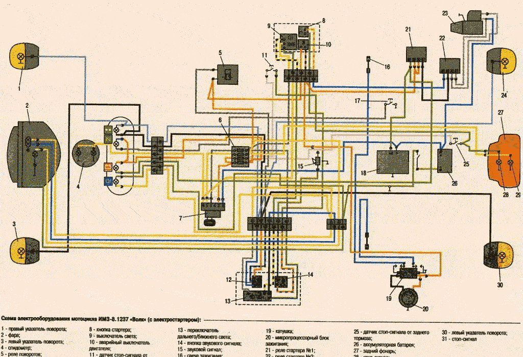 Но самое необходимое у него есть, и схема соединений поможет вам разобраться в поломке или настроить проводку. Когда бумажка освободится при опускании поршня на глубину сделанной отметки, зажигание будет правильно выставлено. Подача тока на осветительные приборы и сигнальные знаки поворотники, габариты, стоп-сигналы. Схема электрическая мотороллера Муравей электрооборудование Схема электрическая мотороллера муравей электрооборудование Электрооборудование мотороллера Муравей используется в основном по трем направлениям.