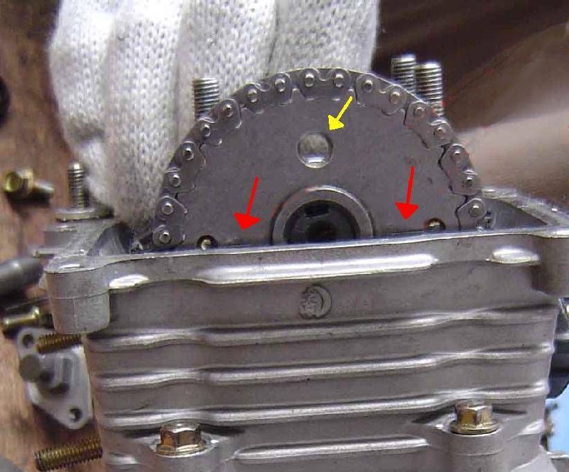 Обратите внимание на то, что одна точка больше других. После регулировки зажигания она должна оказаться сверху, а две другие метки остаться напротив друг друга