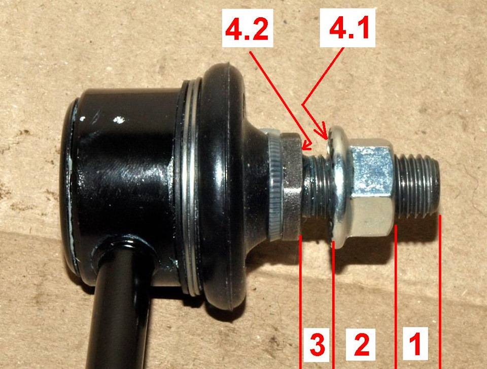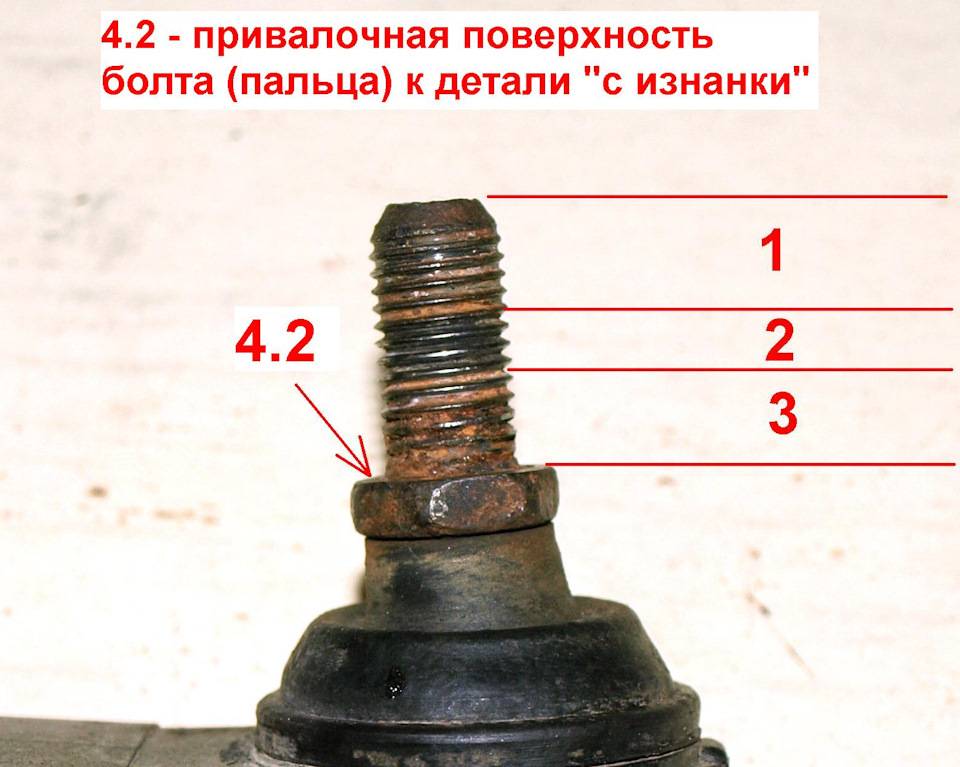Зона 3.Это зона, где сопрягаются 2 детали. Например, головка стойки стабилизатора вставлена в стабилизатор или стойку подвески (как в нашем случае).На этом участке болт контактирует с воздухом и при попадании воды (ей в эту зону проникнуть гораздо легче, чем во 2ю) легко кородирует.Исключение — плотная конусная посадка как у шаровых или рулевых пальцев, которую можно отнести к зоне 2.