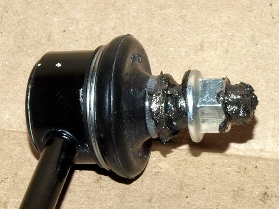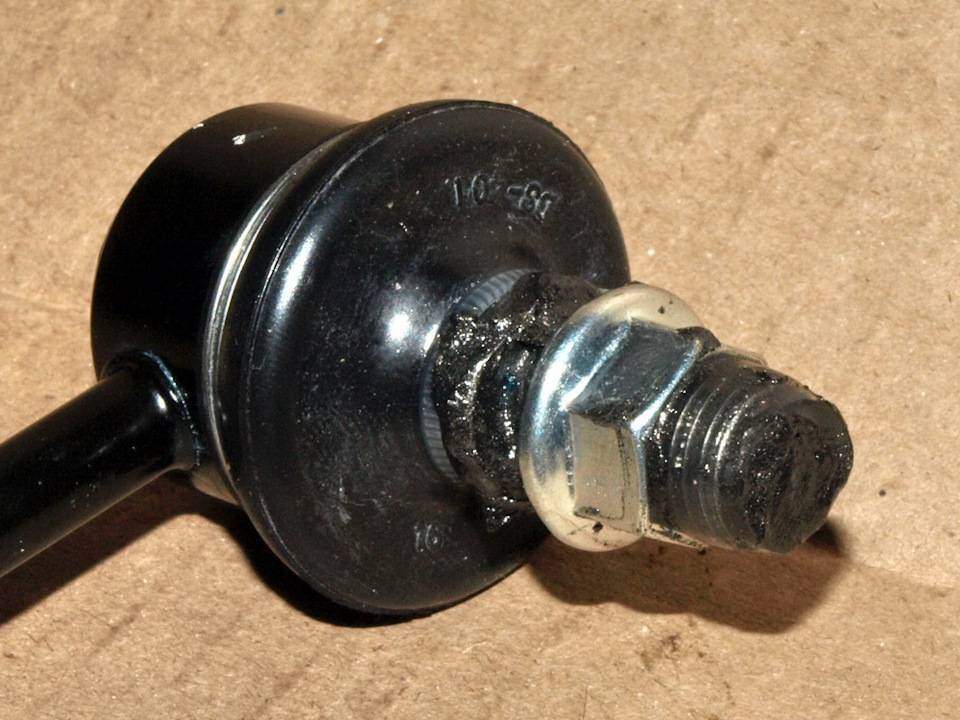 Проверять будем резьбовое соединение стойки стабилизатора, которая была установлена два года назад. Защита резьбы производилась сразу при установке.