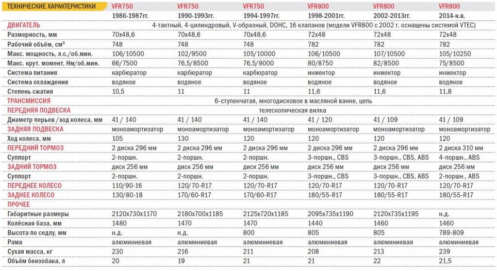 | Модели | VFR750F-G (’86) | VFR700F-G (’86) Только для США VFR700F2-G (’86) Только для США | VFR750F-H (’87) | VFR700F-H (’87) Только для США VFR700F-H (’87) Только для США | VFR750F-J (’89) | VFR750F-K (’89) | VFR750F-L (’90) | VFR750F-M (’91) | VFR750F-N (’92) | VFR750F-P (’93) | VFR750F-R (’94) | VFR750F-S (’95) | VFR750F-T (’96) | VFR750F-V (’94) |