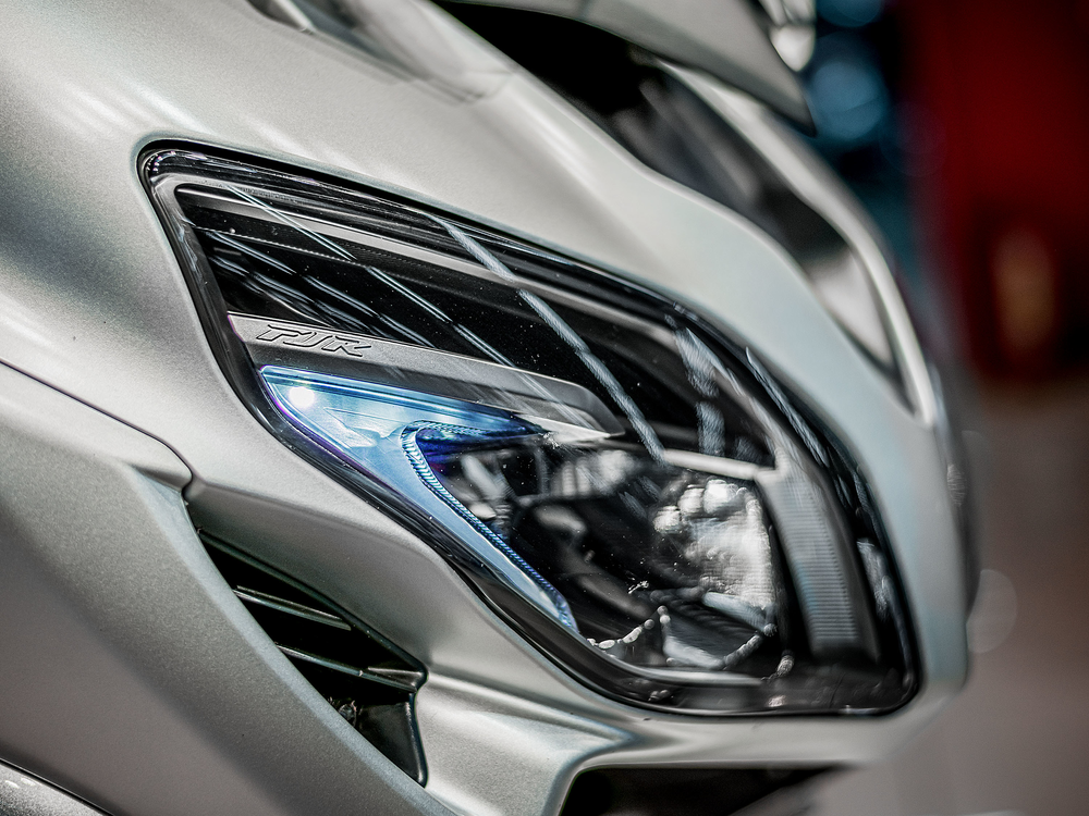 A stylish revamp of the lights on the FJR1300 gets a thumbs up with LEDs all around. The headlight throws a sharp beam that pierces the darkness for good visibility. LED taillights tuck unobtrusively under the tail, and for the ES, you get lean-sensitive cornering lights.